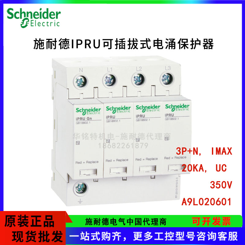 施耐德iPRU可插拔式電涌保護器, 3P+N, Imax: 20kA, Uc: 350V,A9L020601